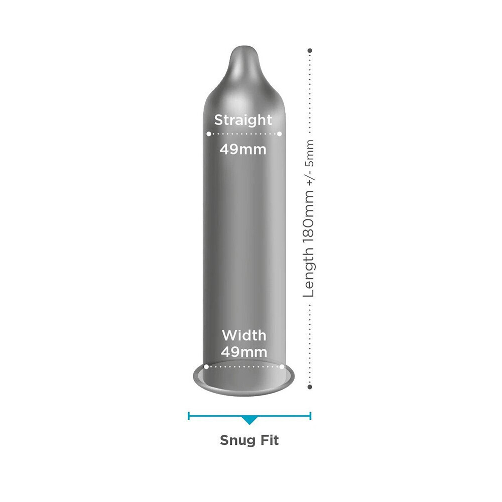 For a tighter, more secure fitting condom choose EXS Snug Fit.They come with a 49mm width and have a straight wall and a teat end.Vegan-approved and Cruelty-Free. EXS are vegan approved. EXS take great pride in being cruelty-free with no animal testing whatsoever. EXS standards have been awarded by the Vegan Society and animal rights organisation, People for the Ethical Treatment of Animals, PETA.Quality TestingEXS factories as well as the British Standards Institute, BSI, both test our Condoms.Our EXS condoms have a number of tests performed on them including, each condom being electronically tested for holes, and samples being burst pressure tested for strength. The quality of the latex we use for our condoms and the vigorous testing we perform means we can be confident that EXS condoms are amongst the best quality condoms in the world.WIDTH 49 mmTHICKNESS 0.062mmLENGTH 176mmSmooth, plain, natural latex, flared, teat ended, and silicone lubricated condom.