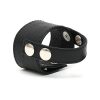 Genuine leather blindfold with detachable blinkers, adjustable with buckles.