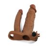 Intensify pleasure for both of you and add inches instantly with the Vibrating Pleasure X-tender sleeve! With the ball strap wrapped snug around you, you’ll prolong ejaculation for the most explosive climax you’ve ever imagined. Your partner will enjoy deeper penetration with the 2-inch extension at the tip, while the ultra-lifelike shaft makes you 40% thicker all around.This lifelike extension is super-stretchy to accommodate most sizes, tight enough to help you last longer, and the super-soft material feels like a second skin-only better!The external surface is textured with lifelike veins and features a bulbous head to ensure your lover experiences natural feeling sensations. A smooth internal canal hugs your erection for maximum contact and stimulation.Thin Tapered Dildo is great for Anal Stimulation, Experience double penetration without having to involve others with The LoveToy Double Pleasure Extension!For body-temperature fun and fool-proof realism, soak the extension in warm water before play.Use a generous squeeze of water-based lubricant on the outside and inside surfaces of the toy for maximum comfort and pleasure.Key FeaturesSuper-realistic penis extension sleeve for an increase of 2 inches in length and 40% in girth.Realistic head and veiny shaft enhances sensation for the receiver.Made from temperature-responsive real-feel material.Double Pleasure Extension with Anal dildo.Extra Vibrating bullet included for fun!Sleeve Length 7.8 inch.Inner Length 5.8 inch.Sleeve Width 1.65 inch.Dildo Length 6 inch.Dildo Width 1 inch