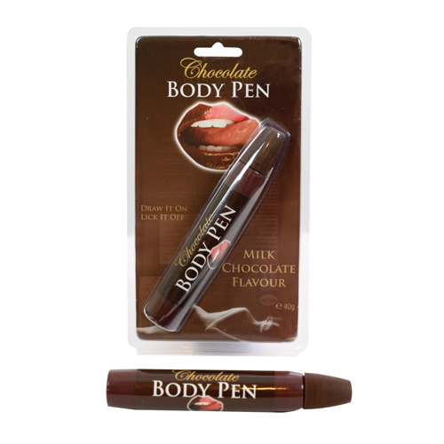 Put your message across in the bedroom with our chocolate flavoured pen. Draw or write on your partner’s body, and then lick it off!Ingredients,Glucose Syrup, water, sugar, thickener Xanthan Gum E415, Citric Acid E330, Sodium citrate E331, flavours, potassium sorbate E202, colour caramel E150a