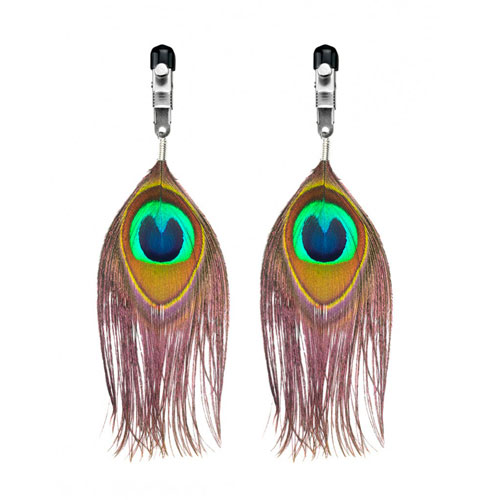 Adjustable beautiful tassel nipple clamps with fluffy peacock feather trim. Perfect for beginners through to advanced users. Increases sensation and erotic response. Perfect as an erotic gift for your partner.