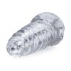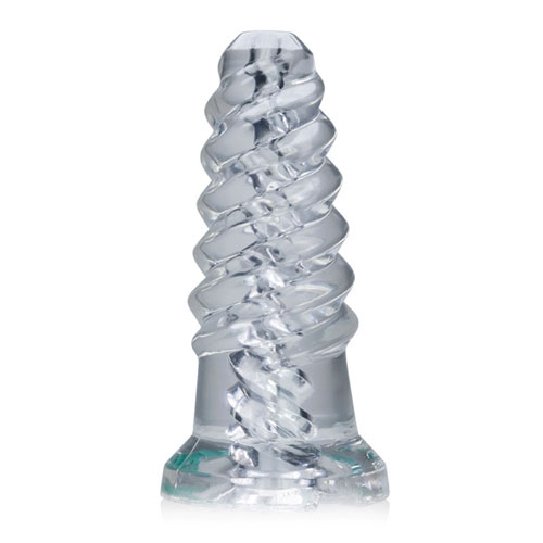 Lightly lube the inside of the toy. Spiral ribbing inside SCREW’D feels like a twisting wet handjob.