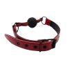 Leather Ball Gag in Burgundy Snake Print with Black Ball and Black Accessories.